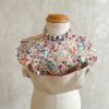 軽やかな布製で、硬さのないしなやかな着け心地。 お子さまの首や頬に触れてもやさしく、長時間つけていても負担になりにくい仕様です。 表面には撥水・防水加工を施し、水分や食べこぼしが裏側に染み込みにくく、見た目の可愛さと実用性を両立します。