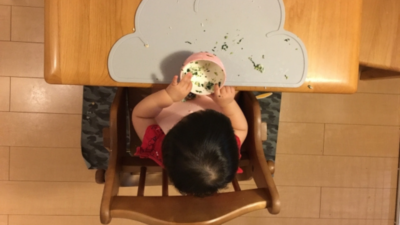 赤ちゃんは、手づかみやスプーンなどを自由に使って、自分の好きなように食べ進めていきます。
