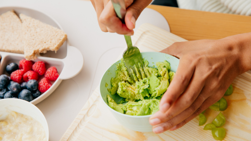 次に試したのは、にんじんとアボカドでした。 最初は口に運ぶだけでしたが、少しずつ口に運ぶ様子が増えてきました。1ヶ月後:食事に興味を示すように