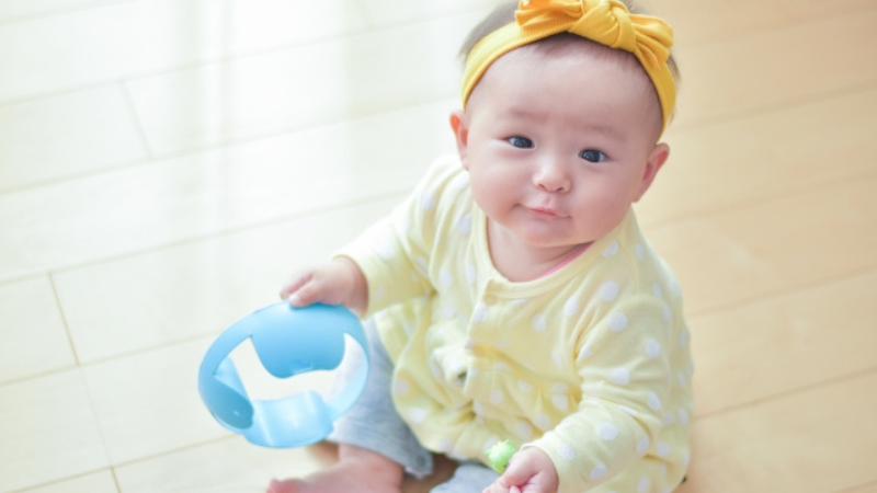 8〜9ヶ月ごろになると、指先を使って小さなものをつまむ動きが少しずつできるようになります。