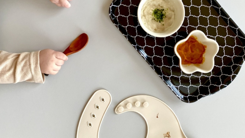 エプロンやマット、工夫された食器などを使えば、汚れや手間をぐっと減らすことができます。