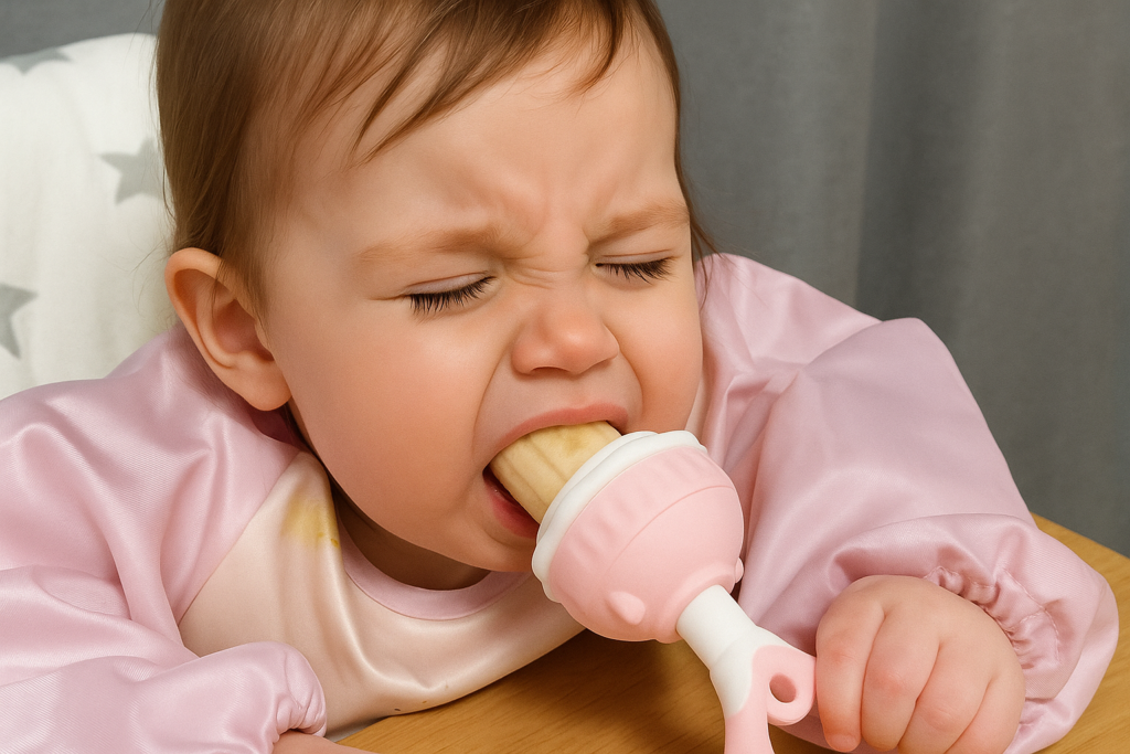 ですが、フィーダーを使えば果肉をそのまま入れるだけであとは赤ちゃんが自分で果汁を吸ってくれるのです!