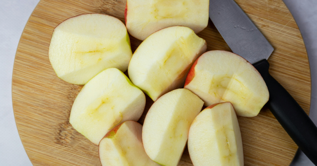 まずは薄く切ったりんごをレンジで温めて柔らかくして出してみることに。