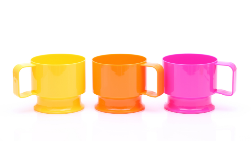 軽くて割れにくいプラスチック製のコップがよいでしょう。