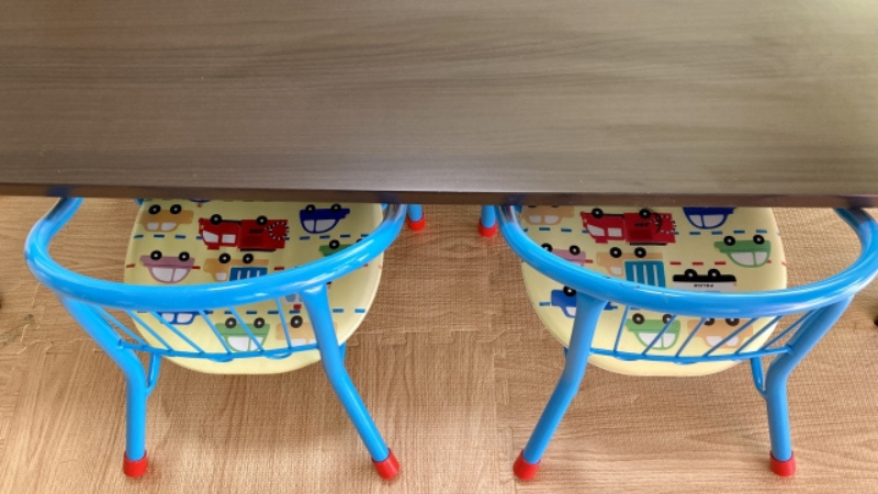 理想は、子どもが少し前傾になり、自然に机に近づいた姿勢で食べられる高さです。