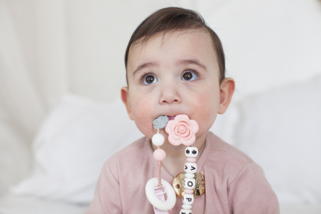 最近のおしゃぶりホルダーは、カラフルなシリコンビーズや、温かみのある木製ビーズで作られたものなどたくさんの種類があり、これらは赤ちゃんの五感を刺激します。