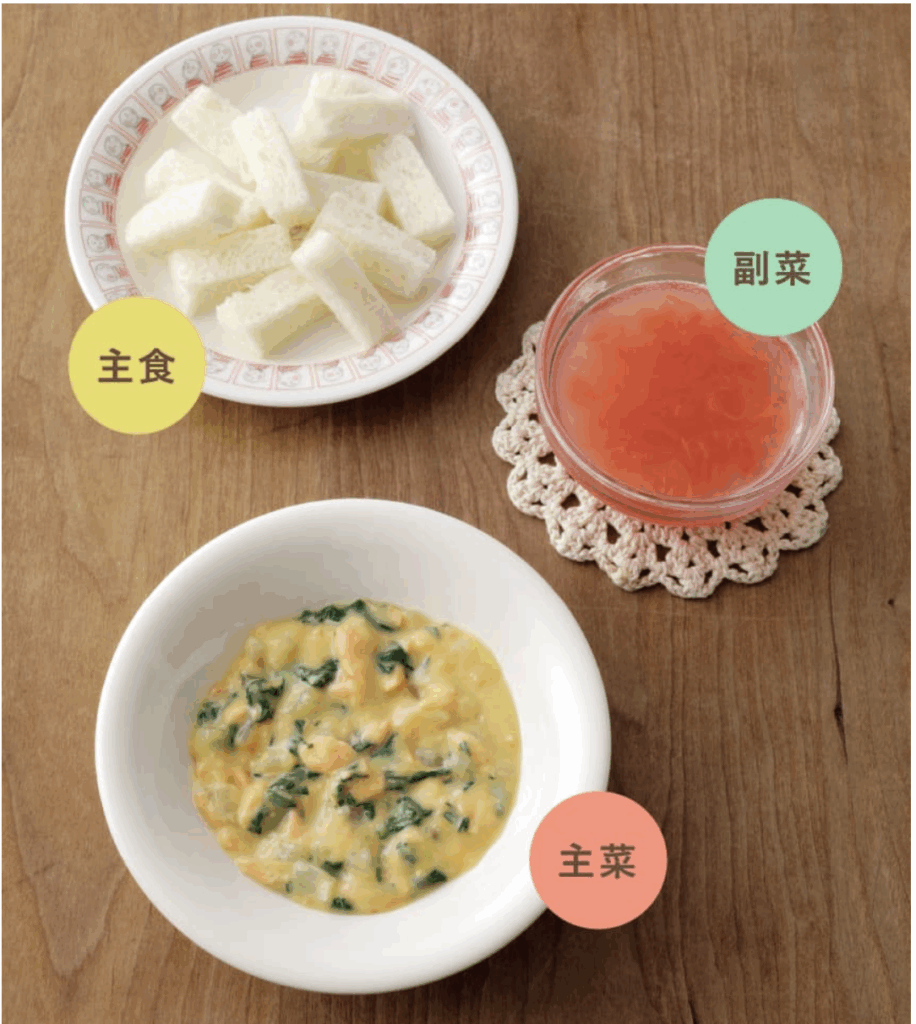 赤ちゃんの食べる量や好みに合わせて、果物やスープ、市販ベビーフードなども組み合わせながら調整してください。
