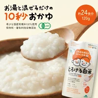 国産有機米100%使用した、10秒混ぜるだけのかんたんおかゆです。保存料・香料・着色料・食塩・化学肥料・農薬は不使用。