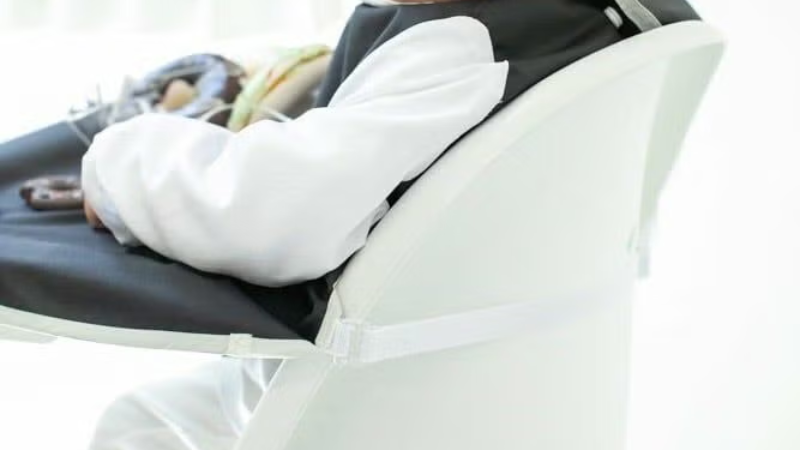 (1)安定したハイチェアを選ぶ(5点式ベルトなど)